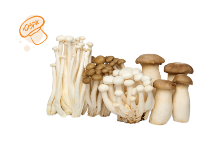 פטריות שי מג'י חומות ולבנות – הפטריות גדלות בטבע על עצי אשור פטריות שי מג'י יפהפיות במראן, יש להן ראש קטן ורגל ארוכה, הן בעלות טעם עשיר וייחודי ומכילות רכיבים מעוררי טעם המשדרגים כל תבשיל ומאכל בבישול או בהקפצה. לפטריות שי-מג'י ערכים תזונתיים גבוהים, הן מכילות ברזל, נחושת, אבץ, אשלגן, תיאמין, חומצה פנטותנית, ויטמינים ממשפחת B. חובה לבשל את הפטריות לפני ההגשה. פטריות שי מג'י בעלות מרקם ייחודי וטעם אגוזי, הן מתאימות לסלטים, למרקים, לפסטות, למוקפצים, לתבשילי בשר, עופות, דגים ופירות ים.